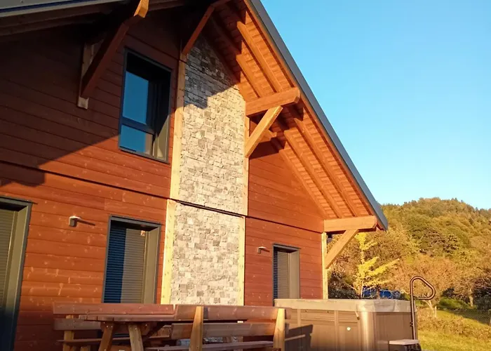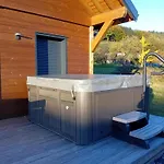 Le Chalet De L'Ancerf Faucompierre, located approximately 10 minutes by car from Petite Cascade de Tendon, invites guests to relax in a Jacuzzi.